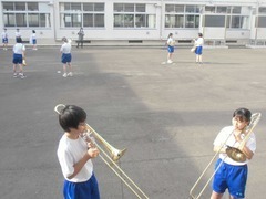 写真は、吹奏楽部が中庭(屋外)で活動している様子です。