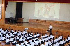 始業式の中で、市川校長先生から、水泳の池江璃花子選手のメッセージが紹介され、「希望の力となる目標をもち、その実現のために、各自がプラス1の努力をしていこう」とのお話がありました。