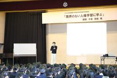 ご自身がこれまで経験してきた差別についてお話され、その立場について生徒が自分のことに置き換えて考えることができた貴重な機会となりました。