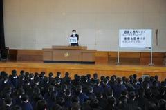 桜が舞う晴天の下、元気なあいさつと共に登校する生徒たちの姿がありました。新しい学級の仲間や先生との出会い、いよいよ新学期がスタートしました。期待や不安といった様々な思いがある中で、新たな目標をもち、仲間と高め合い、充実した学校生活を送って欲しいと思います。