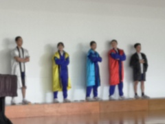 本日、昼、生徒会主催の軍カラー決め集会が行われました。各学年工夫を凝らしたゲーム(?)で順番を決め、くじを引きました。ゲームや色の発表に会場は大盛り上がり。生徒の手で楽しい時間が演出されていました。