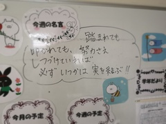 校内を歩いていると、ある学年部のホワイトボードに「努力し続ければ必ずいつかは実を結ぶ」ということばがありました。今、生徒たちは単元テストや体育祭、部活動など、さまざまな目標に向かって歩み始めました。時に結果が見えず、不安な時もあるかもしれませんが、ぜひ努力という名の種まきは続けてほしいと思います。
