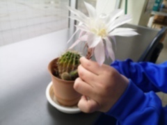 「先生、サボテンの花が咲いたんですよ~!」