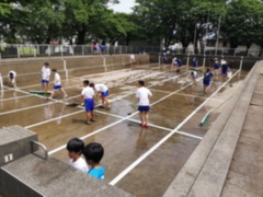 熱戦が繰り広げられている中、学校では地区大会を終えた陸上競技部のみなさんがプール清掃を行ってくれました。落ち葉や砂泥を片付けたり、ブラシでひたすら磨いたり・・・大変な作業でしたが、楽しみながら作業に取り組む姿がとてもステキでした。これで今年のプール授業も何とか行えそうです。プール自体は古くなっていますが、心を込めて磨けば輝きを取り戻す。大切なことを学ばせてもらいました。
