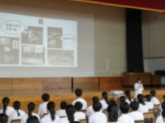 広島派遣事業参加者からは平和記念資料館や平和記念式典の様子を伝えてもらい、戦争の悲惨さを理解し、自分たちにできることを考えました。