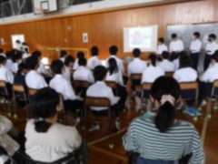 実際の職に触れ、様々な「生きた学び」を手に入れた2年生。一人一人がどのような成長を遂げたのかを伝え合う発表会が開かれました。発表を聞いていると、これからの学校生活、いや、人生に生きることを学んでいるのだと嬉しく思いました。管理者Kの時代には職場体験なんてなかったんだぞ…と現代の中学生がうらやましくもあります(笑)