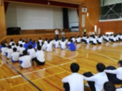 夕暮れが早くなった今日この頃。自転車の乗車時のルールやマナーを再度確認してもらうために全体で集まり、お話をしました。ヘルメットの着用や並走禁止など、みなさんの命を守るために絶対に守ってほしいと思います。地域の皆様も見守りよろしくお願いいたします。学校でも引き続き指導を進めていきます。