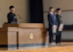 先日のGTの時間に、生徒会三役任命式が行われました。目指したい生徒会の姿に向かって堂々と邁進してほしいという熱い激励とともに、任命書が校長先生から手渡されました。