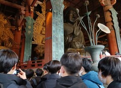 道中、多少の交通渋滞があったものの無事到着し、最初の見学地へ。本物の大仏の姿に圧倒されているようです。