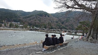 桂川のほとりで優雅なひと時を過ごしているようです。あわただしい毎日の中に、こんなゆっくりとした時間がとれるってすてきですね。