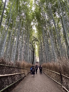 嵐山の竹林を散策しています。竹に囲まれて不思議な空間ですよね。