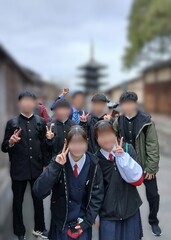 生徒も職員も楽しそうですね~。後ろに見えるのは東寺の五重塔でしょうか?