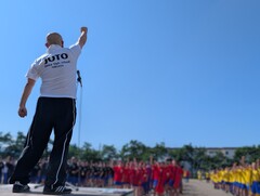 今年も校長先生の「元気ですか~」から体育祭がスタートです。雲一つない青空、5軍のオリジナルTシャツ、そして笑顔が映えます。かけがえのない青春の1ページ、開幕です!